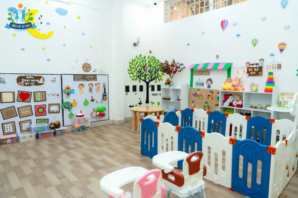 Tọa lạc tại số 58, phố Ngô Quyền, Phường Hà Đông, Thành phố Hà Nội, Mầm non Học viện Ngôi Sao Toả Sáng (Lucky Star Academy) thiết kế theo tiêu chuẩn lớp học hiện đại với các 05 phòng học, 01 phòng chức năng, thư viện, sân chơi, 01 bếp… Với diện tích 106m2 /tầng, mỗi tầng 02 phòng học, mang đến cho các học sinh không gian thoáng mát, rộng rãi. Từng phòng học đều tràn đầy ánh nắng và gió mát với các góc học tập sinh động cùng với những dụng cụ học tập hiện đại. Tạo ra một môi trường học tập và vui chơi an toàn, hiện đại và kích thích sự phát triển toàn diện của trẻ.